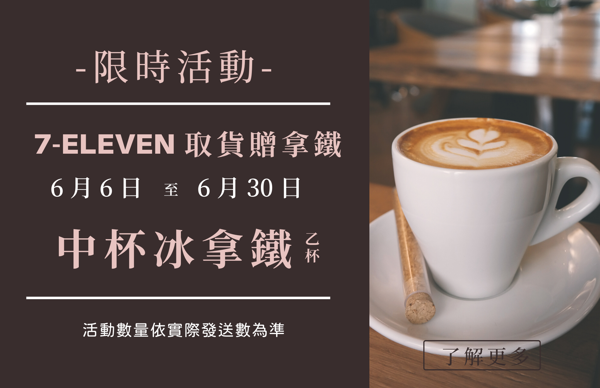 於活動時間內 ( 2022 年 6 月 6 日起至 2022 年 6 月 30 日止 ) 完成下訂並於 2022 年 7 月 24 日 23:59 前在 7-ELEVEN 完成取件者,即享有獲取資格 ( CITY CAFE 中杯冰拿鐵 乙杯 ),贈送對象將於 2022 年 7 月 27 日起至 2022 年 8 月 6 日止依實際完成取貨順序發放,因數量有限送完為止,如未獲贈不另通知。