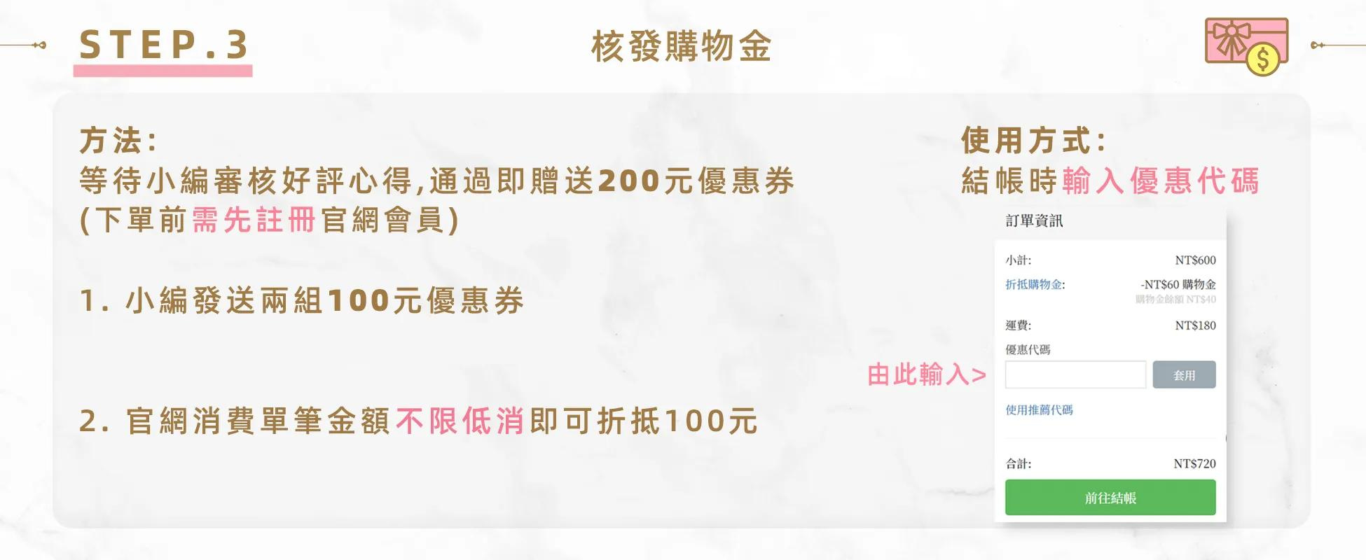 無論是老顧客或新朋友,感謝你喜歡我們,邀請你分享好評,就送200元折價卷給你喔!