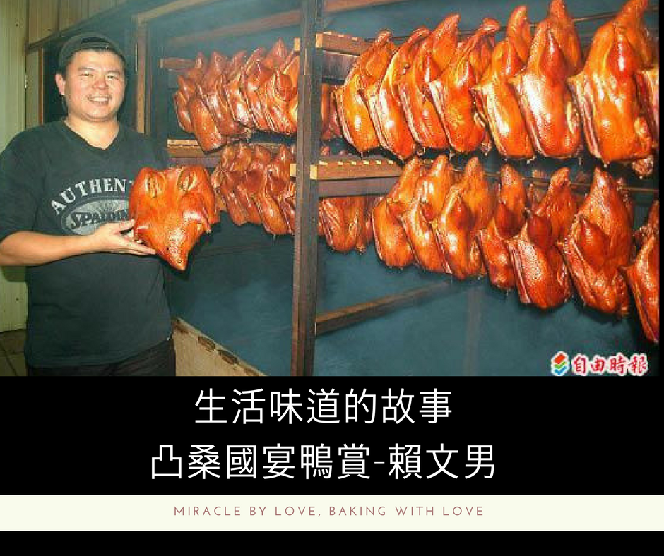 賴文男的小名叫「凸仔」,傳承家族從第一代阿公「阿旺師」開始做鴨賞,之後向第二代父親「阿萬師」拜師學藝,學成之後,在2010年另立門戶,後來以自己的小名成立凸桑品牌。
