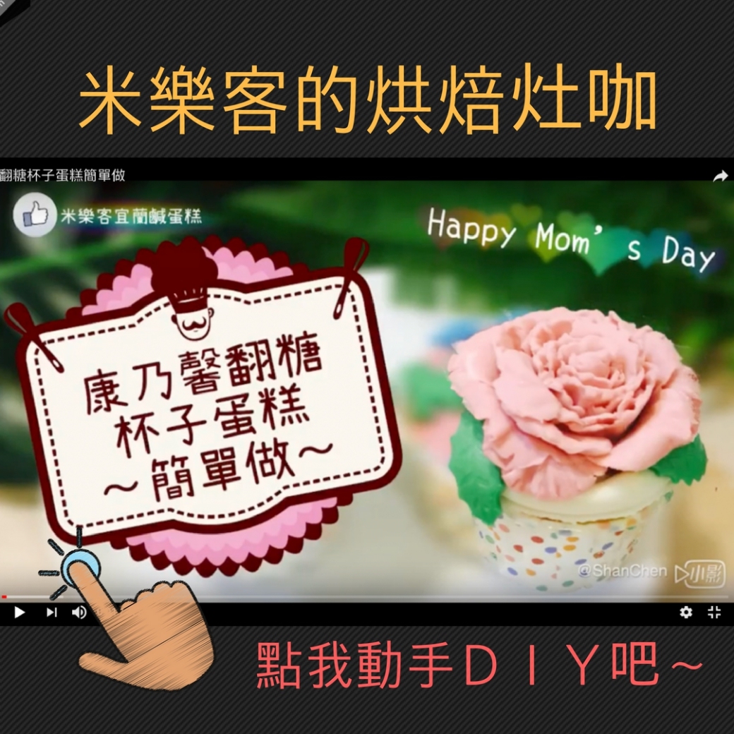 又到了一年一度的母親節,想好要帶媽咪去那兒慶祝呢?帶媽咪去吃一頓豐盛的大餐當然少不了,餐後最重要且一定不能少的就是母親節蛋糕了。除了6吋、8吋及10吋等的母親節蛋糕之外,小小的杯子蛋糕也很適合當作母親節蛋糕。之前看到天后蔡依林製作的翻糖蛋糕超精美的,於是米樂客用很好塑型的翻糖來做杯子蛋糕上的裝飾。將翻糖製作成母親節的代表花-康乃馨,放在杯子蛋糕上。精美小巧的康乃馨翻糖杯子米蛋糕,想必能滿足媽咪的少女心。