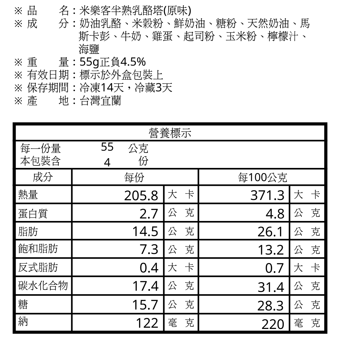 ※ 成 分:奶油乳酪、米穀粉、鮮奶油、糖粉、天然奶油、馬斯卡彭、牛奶、雞蛋、起司粉、玉米粉、檸檬汁、海鹽