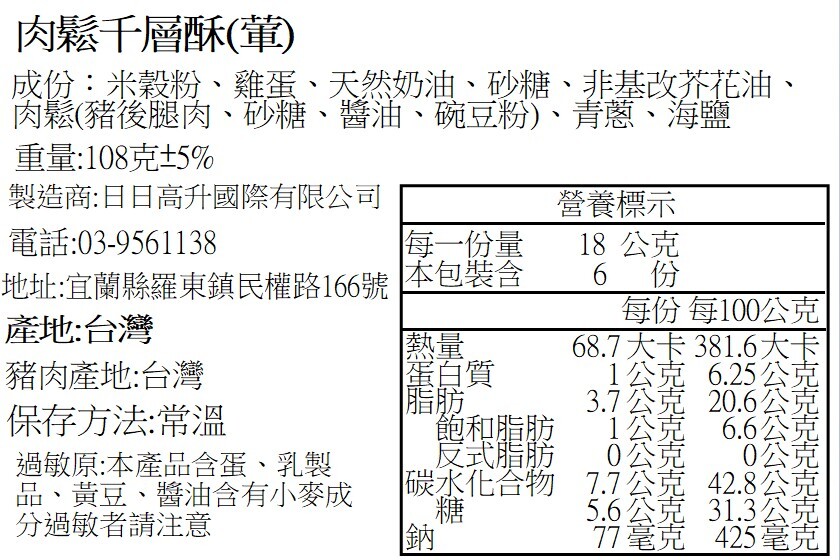 ♦賀!!【三星蔥肉鬆千層】榮獲2021米糧烘焙精品♦