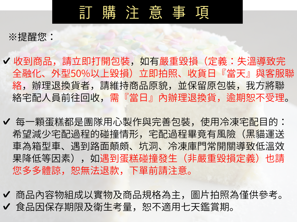 (ex: 週五需要蛋糕,請於週一訂購 )
