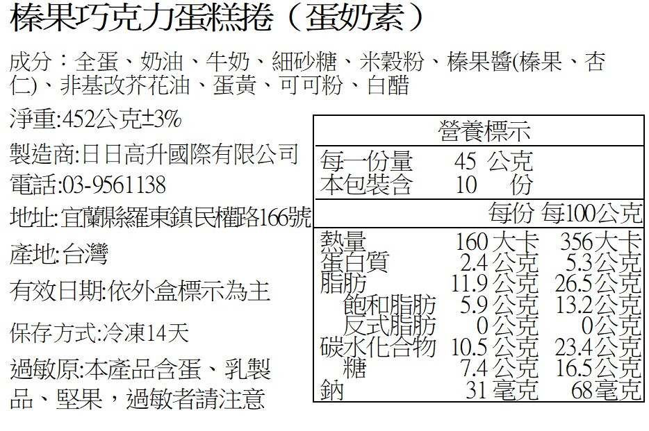 ※ 品名 :榛果可可捲(蛋奶素)